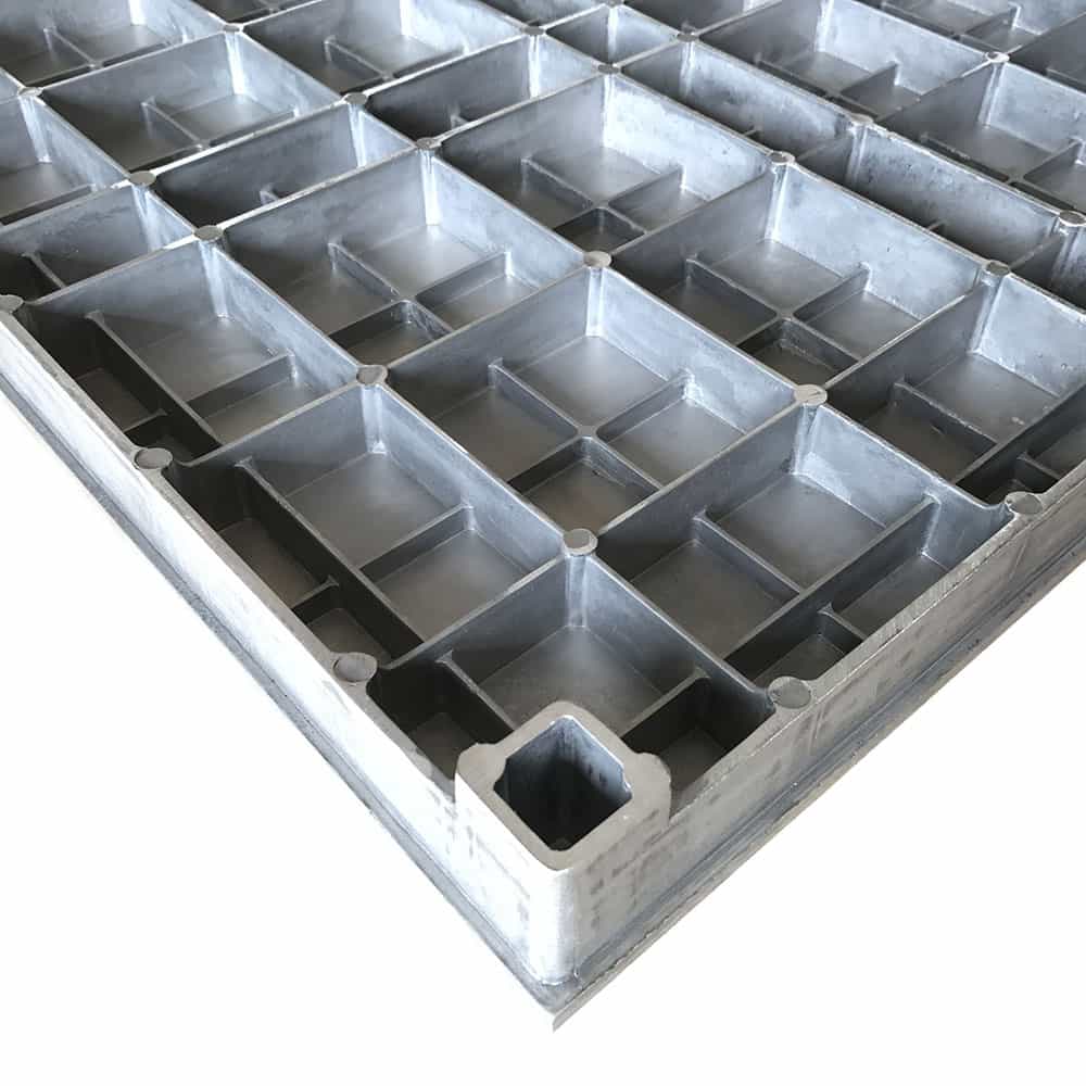鋁合金地板采用高壓壓鑄工藝,鋁錠熔化后,經(jīng)高壓壓鑄機(jī)一次性真空壓鑄成形,融合了鋁合金耐腐蝕的特性,地板表面可根據(jù)需要進(jìn)行環(huán)氧樹脂噴粉或鎳鉻電鍍,從而表面達(dá)到柔光、防腐、耐磨效果。